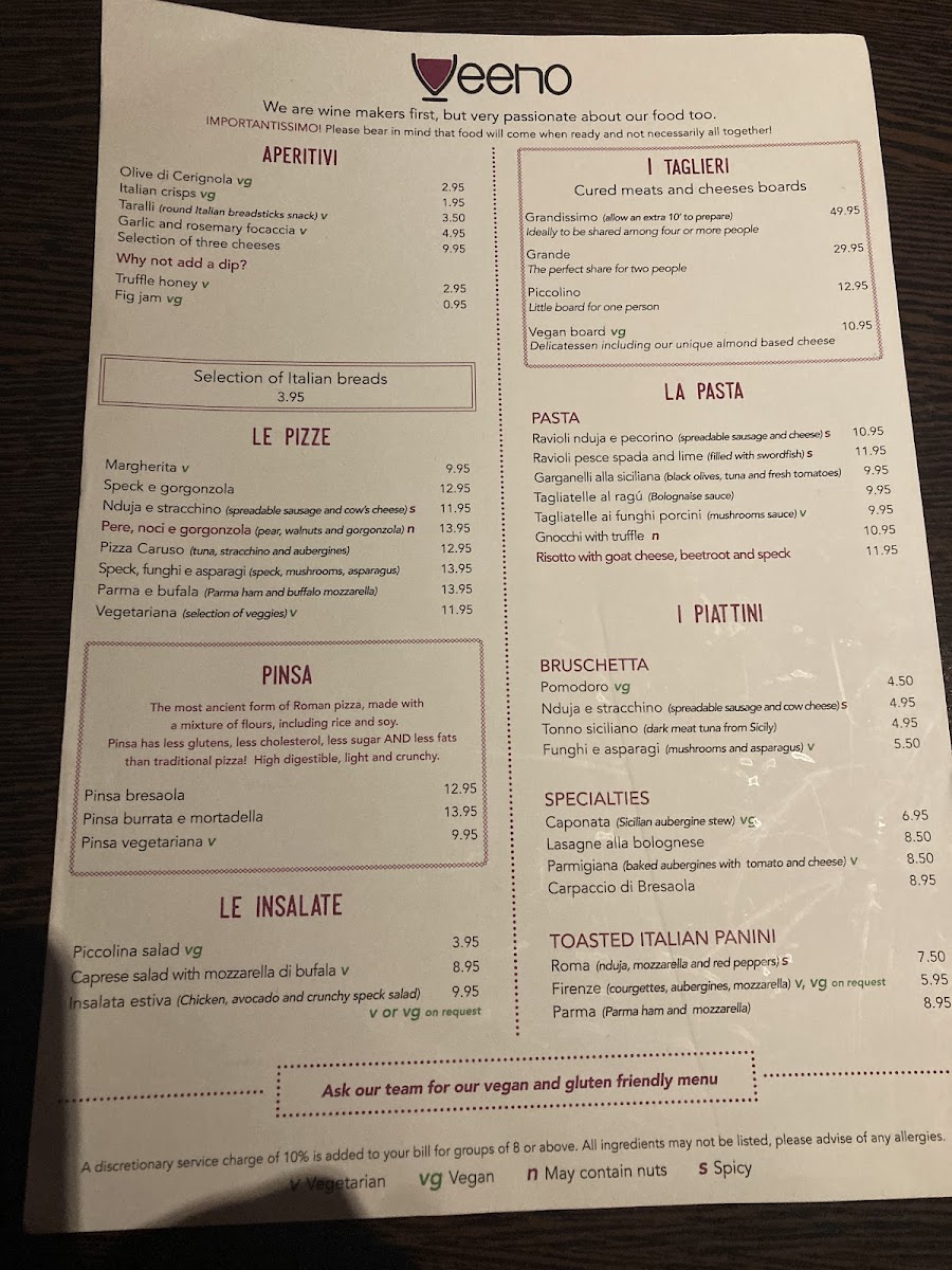 Overall, Veeno Edinburgh delivers an authentic Italian experience with a menu that both foodies and wine lovers will enjoy. Whether you're popping in for a quick bite or settling in for a longer evening, this spot is sure to impress.